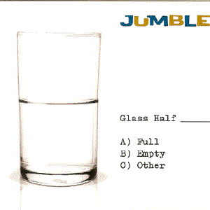 Glass Half is the debut album from Menlo Park CA based JUMBLE. Webster defines jumble as "to move in a confused or disorganized manner" but JUMBLE's first album Glass Half does anything but, consisting of ten purposeful, laconic, and melodic tunes. The arrangements are crisp but not formulaic, the lyrics intelligent, and band's guitar-centered sound is at once fresh and familiar. JUMBLE's music looks forward (and often inward) with roots planted firmly in the bedrock of the last four decades of pop music. There is a sense of ironic detachment in the lyrics of singer Lucius James and his vocals, guitar and slide guitar form the basis of the group's sound. Derek Cooper fills out the rest of the band with assurance, adding distinctive guitar solos to Saving Grace and Ordinary Town. From the first song, Saving Grace inspired in part by the 2008 presidential campaign of Barack Obama, to the haunting, eastern-influenced solo on Inside Out played by classical violinist Melba Toast, to the final tune Undertow, a sly reminder of the dangers of coasting, this album provides a series of vignettes that are timely and timeless. User-contributed text is available under the Creative Commons By-SA License; additional terms may apply.