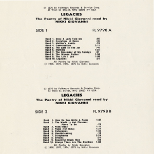 View on Last.fm β†’More by Nikki Giovanni β†’Legacies: The Poetry of Nikki Giovanni β†’